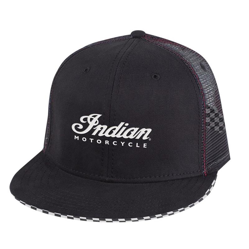 Flatbill Checkered Trucker Hat Black Indian Motorcycle