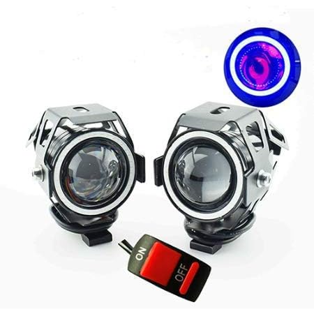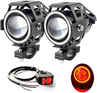 Amazon Com Motorcycle Fog Light Headlight Ip68 Waterproof 3000lm Super Bright 125w Led Light Motorcycle Headlight Cree U7 Led Spotlight Daytime Running Lights With 1pcs Switch With Red Angel Eyes Automotive