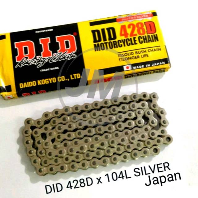 DID 428 Heavy Duty 126L Motorcycle Chain. DID brand drive chains and aluminum rims are all manufactured in Kaga Ishikawa prefecture Japan and supplied through motorcycle dealers worldwide. This focus on uncompromising quality has made D.