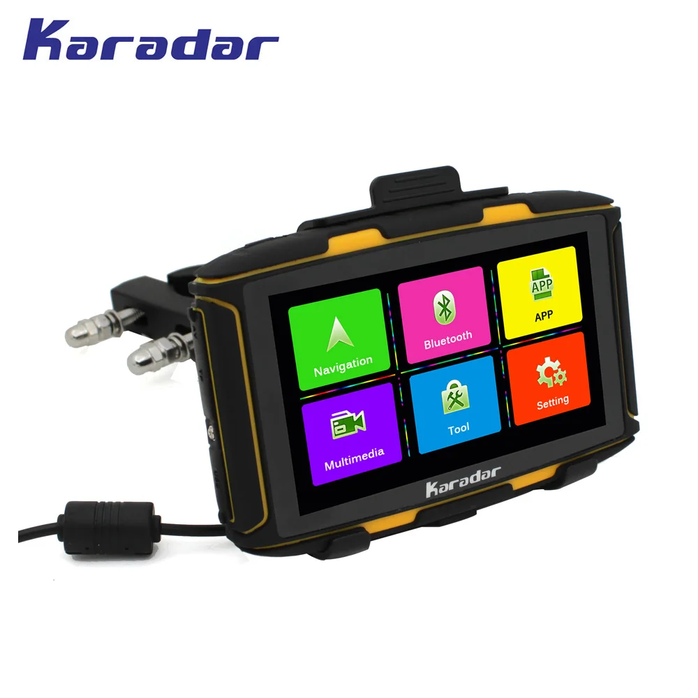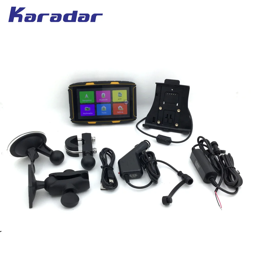 The description of item Features. KARADAR New waterproof motorcycle GPS navigator 43 inch with 360 degree handlebar holder Resistive touch screen 8G flash Get Now On Aliexpress. Compare Price Low and Options of product from diversity stores in the world.
